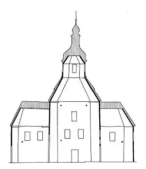Вигляд на центральну частину, бабинець і дзвіницю