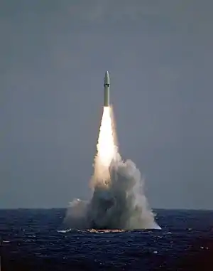 ![]() Пуск UGM-27C Polaris A-3 з атомного підводного ракетоносця USS Robert E. Lee (SSBN-601) 20 листопада 1978 року | |
