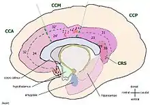 ![]() Медіальна поверхня головного мозку людини | |