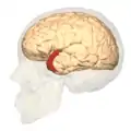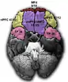 Вентральна поверхня мозку людини з позначеними на ній скроневими полями.