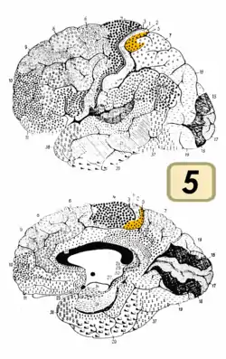 ![]() Розташування поля 5 Бродмана (виділено помаранчевим) | |