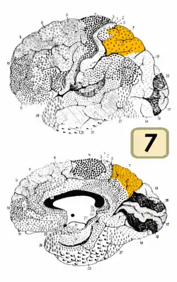 ![]() Зображення 'поля 7 Бродмана (позначено жовтим кольором) | |