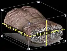 У томографії поле зору — це область кожної томограми. Наприклад, у комп'ютерній томографії, об'єм вокселів може бути створений з таких томограм, як об'єднання декількох зрізів уздовж діапазону сканування.