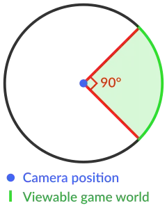 Поле зору зазвичай подається як кут для горизонтальної або вертикальної складової. Більший кут вказує на більше поле зору. Втім, в залежності від методу масштабування, який використовується в грі, він може впливати тільки на горизонтальну або вертикальну його складову.