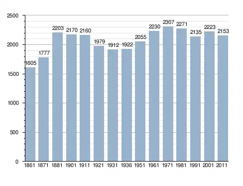 Станом на 31 грудня 2014 року в муніципалітеті офіційно проживали 92 іноземці з 23 країн, серед них 32 громадяни країн Євросоюзу та 6 громадян України.[4]
