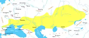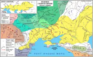 ![]() Територія розселення половців (початок ХІІІ ст.).[1] | |
