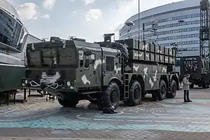 - 4 пускові установки (по 8 пускових контейнерів на кожній), на шасі МЗКТ-7930 8Х8