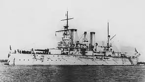 | Бронювання | головний пояс 368—254 мм, верхній пояс 127 мм, траверси 229—203 мм, броньова палуба 76—51 мм, башти головного калібру 254 мм, середнього — 127 мм; рубка 229 мм | |