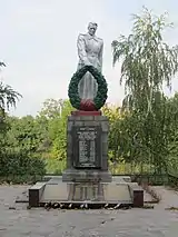 - Братська могила героїв битви за Дніпро, у якій захоронений письменник А. П. Розмислов
