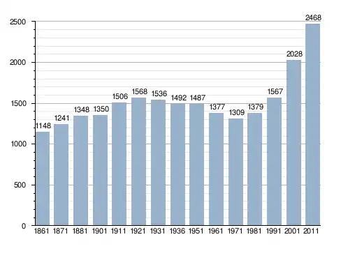 Станом на 31 грудня 2014 року в муніципалітеті офіційно проживало 199 іноземців з 35 країн, серед них 85 громадян країн Євросоюзу та 9 громадян України.[4]