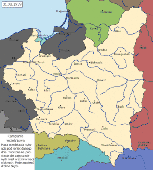 Згідно до попередніх угод з польським урядом, 3 вересня 1939 року Велика Британія і Франція оголосили війну Німеччині, що ознаменувало початок Другої світової війни. 17 вересня у конфлікт втрутився Радянський Союз — як фактичний союзник нацистської Німеччини — і Червона армія окупувала східні області Польщі.