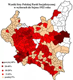На виборах до Законодавчого сейму 26 січня 1919 року ПСП отримала 35 (із 432) депутатських мандатів, що була потрактовано як поразку. В квітні цього самого ж року відбулося також об'єднання трьох партійних організацій, що розташовувались у різноманітних регіонах новоствореної держави: Польської Соціалістичної Партії Прусських Територій, Польської Соціал-Демократичної Партії Галичини та партії Тешинської Сілезії.