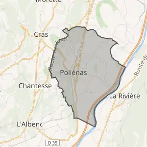 - Розташування муніципалітету Польєна на мапі Франції та сусідні муніципалітети