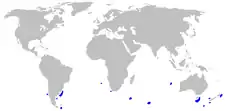 Мешкає в південній частині Тихого, Індійського та Атлантичного океанів біля узбережжя Австралії, Нової Зеландії та ПАР.