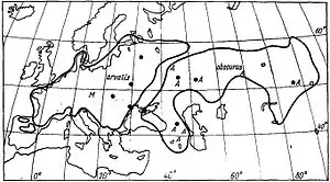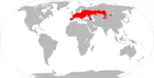 На півночі межа ареалу проходить узбережжям Балтійського моря, південною Фінляндією, південною Карелією, Середнім Уралом і Західним Сибіром, на півдні — по Балканам, узбережжю Чорного моря, Криму, захоплює і північ Малої Азії.