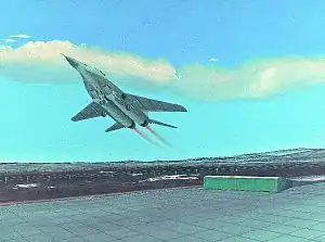 Перший зліт з трампліна з кутом сходу вісім градусів здійснив 21 серпня 1982 року льотчик-випробувач ДКБ-155 Міністерства авіаційної промисловості СРСР імені А. І. Мікояна і М. І. Гуревича Герой Радянського Союзу А. Г. Фастовець на літаку МіГ-29ЛЛ[6].