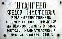 - Штангеєв Федір Тимофійович (пом. 1900) — лікар.