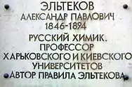 - Ельтеков Олександр Павлович (1846—1894) — російський хімік, професор Київського і Харківського університетів, автор правила Ельтекова.
