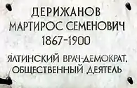 - Дерижанов Мартирос Семенович (1867—1900) — ялтинський лікар-демократ, громадський діяч;