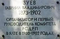 - Зуєв Гаврило Володимирович (1873—1902) — організатор і перший керівник комітету РСДРП в Ялті в 1900—1902 роках;
