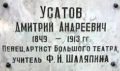 - Усатов Дмитро Андрійович (1849—1913) — співак, артист Большого театру, вчитель Ф. І. Шаляпіна;