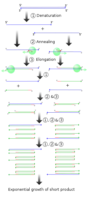 Зазвичай при проведенні ПЛР виконується 20—35 циклів, кожен з яких складається з трьох стадій (див малюнок 2):