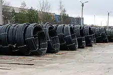 - Склопластикові труби — як армуючі волокна виступає скляна нитка або ровінг. Як сполучні: поліефірні або епоксидні смоли, рідше поліетилен;