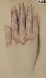 ![]() Вигляд руки при поліневриті Вигляд руки при поліневриті | |