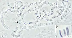 Політенія — наявність у ядрі деяких соматичних клітин або одноклітинних організмів гігантських багатониткових (політенних) хромосом, які за розмірами можуть бути у сотні разів більше за звичайні хромосоми. Є результатом багаторазових подвоєнь хромосом без їх розходження та поділу клітини. Вперше описана французьким цитологом Бальбіані у 1881 році. Політенія призводить до багаторазового підвищення плоїдності ядер (до 32768 n у хірономуса). Внаслідок цього посилюється експресія генів та виробництво необхідних для клітин білків. Для політенних хромосом характерне специфічне розташування дисків, що дозволяє складати цитологічні карти хромосом та вивчати функціональну активність їх окремих ділянок. Політенія спостерігається в клітинах слинних залоз деяких двокрилих (хірономус, дрозофіли), у деяких найпростіших та деяких клітинах рослин.