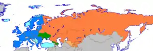 Євразійський економічний союз - це економічний союз пострадянських держав. Договір, спрямований на створення ЄврАзЕС, був підписаний 29 травня 2014 року лідерами Білорусі, Казахстану та Росії, і набув чинності 1 січня 2015 року. [6] Угоди, спрямовані на вступ Вірменії та Киргизстану до Євразійського економічного союзу, були підписані 9 жовтня 2014 року та 23 грудня відповідно. Договір про приєднання Вірменії набув чинності 2 січня 2015 року. [7] Хоча договір про вступ Киргизії не набрав чинності до травня 2015 року, якщо вона буде ратифікована, [8] він бере участь в ЄЕЗ з дня його створення.[9][10][11][12][13] Молдова та Таджикистан є потенційними членами.