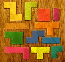 - фіксована (англ. fixed) поліформа — фігура, яку не дозволено ні дзеркально відображати, ні обертати.