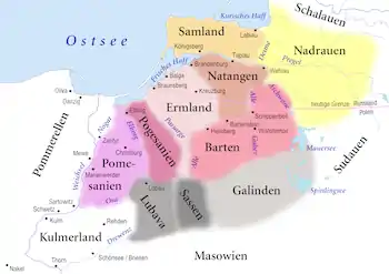 Помезанія (нім. Pomesanien, пол. Pomezania, лит. Pamedė) історична назва землі Пруссії, де проживало одне з давньопрусських балтських племен помедів. Назва походить від прусського «pa-median» — «під лісом, узлісся»[1]. За легендою назва землі походить від імені Помесо, сина вождя Відевута[2]. Терени займали важкопрохідні ліси на півдні вздовж ріки Оса і на заході від її впадіння до Вісли вздовж правого берега останньої, її рукава Ногат, на півночі до озера Друзно і від нього на сході приблизно до міста Любава. На ХІІІ ст. населення Помезанії складало 16.000-20.000 осіб.