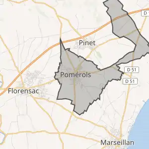 - Pomérols sur le site de l'Insee, наведено за французькою вікіпедією