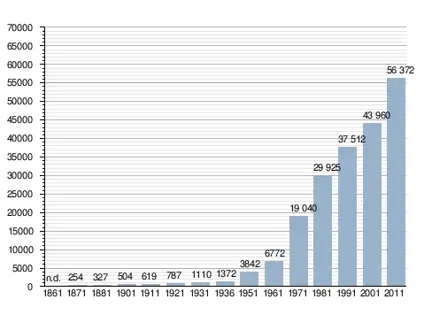 Станом на 31 грудня 2014 року в муніципалітеті офіційно проживали 7704 іноземці з 109 країн, серед них 4548 громадян країн Євросоюзу та 280 громадян України.[4]