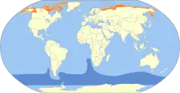![]() Ареал поширення довгохвостого поморника місця гніздування місця зимування | ||||||||||||||||