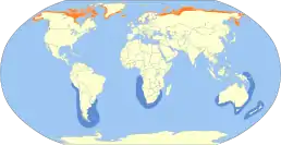![]() Ареал поширення короткохвостого поморника місця гніздування місця зимування | ||||||||||||||||