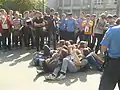 Активісти лежать зв'язкою, щоб уникнути незаконного затримання міліцією у Києві