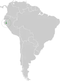 Поширений на східному схилі Анд південно-східного Еквадору (на півдні провінції Морона-Сантьяго) і на крайньому півночі Перу (на сході Піури та на півночі Кахамарки). Мешкає у підліску гірських лісів на висоті від 1650 до 2100 метрів над рівнем моря.