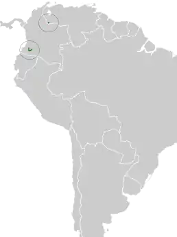 Вид відомий з кількох розрізнених місць у Колумбії та на заході Венесуели. Населяє підліток відкритих ділянок хмарного лісу Анд, переважно між 1800 і 2550 м над рівнем моря.