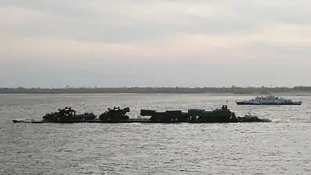 Понтонний парк являє собою комплект майна для наведення наплавного мосту через водні перешкоди або збірки поромної переправи.