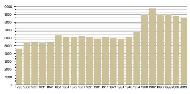 Динаміка населення (base Cassini de l'EHESS pour les nombres retenus jusqu'en 1962[4], base Insee à partir de 1968 (population sans doubles comptes puis population municipale à partir de 2006)[5] · [6] ):