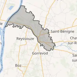 Муніципалітет розташований на відстані[2] близько 340 км на південний схід від Парижа, 80 км на північ від Ліона, 34 км на північний захід від Бург-ан-Бресса.