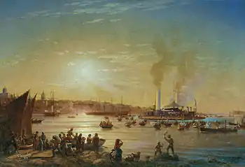 Вперше питання про будівництво броньованих плавучих батарей для захисту входів в Азовське море та Дніпро-Бузький лиман було підняте в 1863 році. В цей час, після поразки в Кримській війні, розвиток Чорноморського флоту було обмежено умовами Паризького мирного договору, тому навіть проект малорухомих плавучих батарей був відхилений. В 1869 військове і морське відомства спільно вирішили будувати такі батареї, що перевершують калібром артилерії і товщиною броні будь-які іноземні броненосці, і при цьому мають осадку не більше 14 футів. Усім цим умовам задовольняла тільки пропозиція А. О. Попова про будівництво круглих в плані батарей, що дозволяло вмістити дві 11-дюймові гармати у 2700-тонний корабель довжиною (діаметром) менше 31 метра при осадці 3,76 метра.
