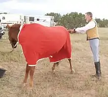Охолоджувач — це велика, майже квадратна попона, яке накидається на коня, який перегрівся і спітнілий від напружених тренувань, або тому, котрий щойно купався і мокрий. Він зазвичай виготовляється з вовни або синтетичного флісу, хоча кілька дизайнів виготовляються з тканої бавовни. Він призначений для використання на коні, поки тварину веде чи утримує людина, але не залишає коня без нагляду[1].
