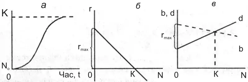 Різниця між питомою смертністю і питомою народжуваністю називають виживанням або біотичним потенціалом популяції (r). r= b-d.