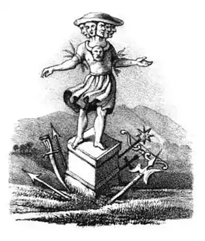 Саксон Граматик, описуючи руйнування храмів у Кореніці в 1168 році, повідомляє, що єпископ Абсалон спочатку знищив ідола Ругевіта, а потім: