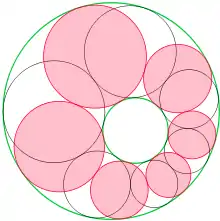 Доводиться застосуванням інверсії, яка переводить пару кіл і в концентричні.