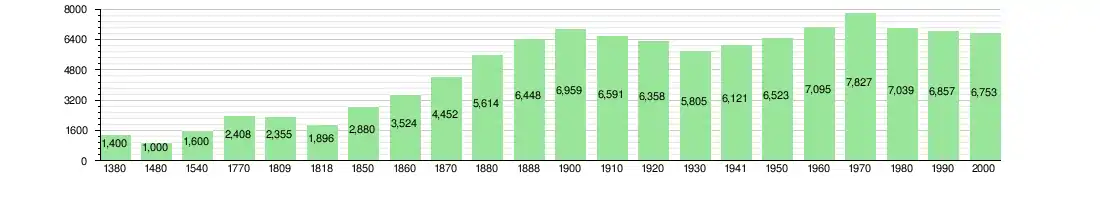 Станом на 2008 16,4% населення складали іноземці. За останні 10 років населення зменшилось на -0,9%. Міграція становила 0,3%, а різниця між народженням та смертністю становить -2,9%. Станом на 2015 в місті проживало — 6,829.
