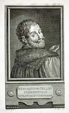 - Vasari, Giorgio (1511–1572) Cosimo I di Medici among court sculptors, architects and engineers. Fresco. (1563). Palazzo Vecchio, Florence. Detail: Portrait of Benvenuto Cellini.