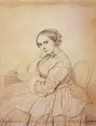 Вона представлена як тепла і приваблива, позбавлена претензійності вищого класу, що характерна для більшості жіночих портретів цього періоду творчості майстра. Енгр зобразив її в тій же позі, що й на малюнку 1855 року. Малюнок зберігається в Художньому музеї Фогга.